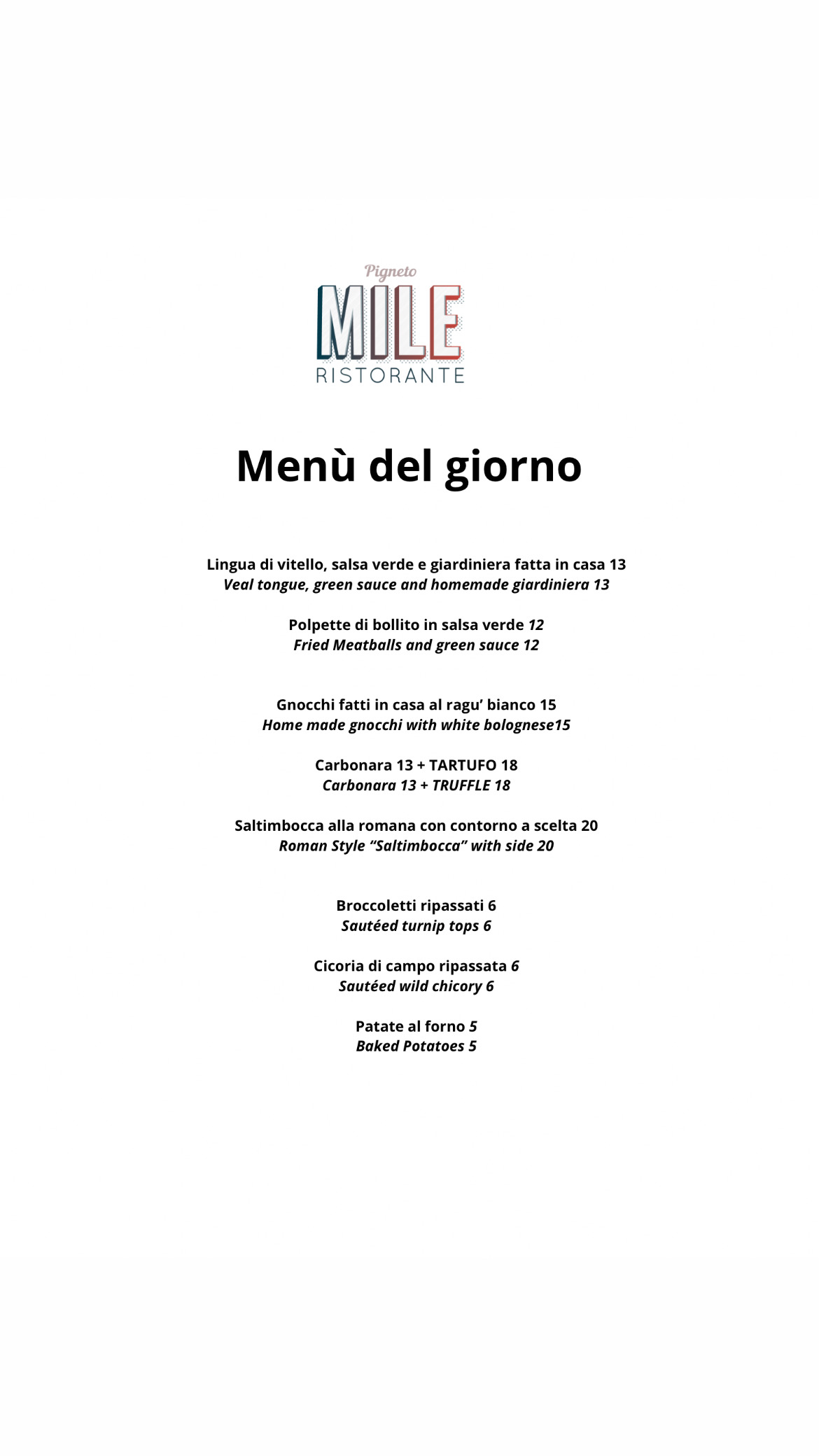 Il nostro menù cambia con il variare delle stagioni. Seguiamo la natura e la rispettiamo.